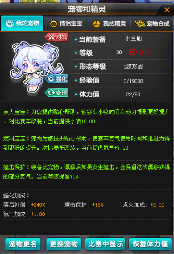 装备描述:爆天雷诺-金刚全29双四,小兰仙强10,雷诺幻夜全29双4,悬浮装扮