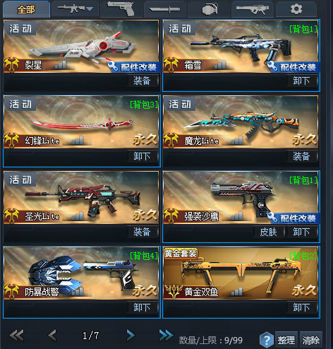 装备描述:霜雪〓裂星〓圣光 魔龙 幻锋 Lite〓强袭沙鹰〓防爆战警