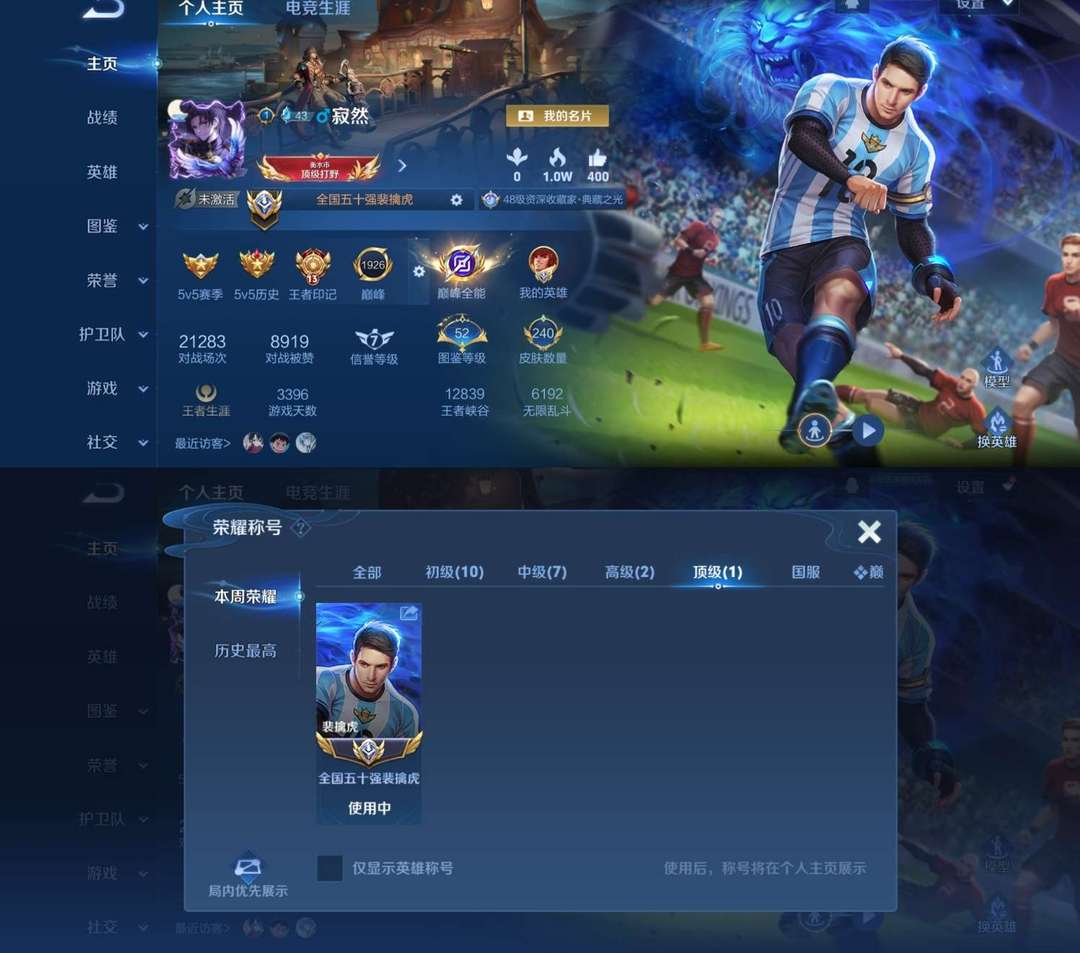 1月在榜全国标小国服50强裴擒虎❤️可排禁巅峰❤️梅西❤️巅峰银框❤️可杰同款