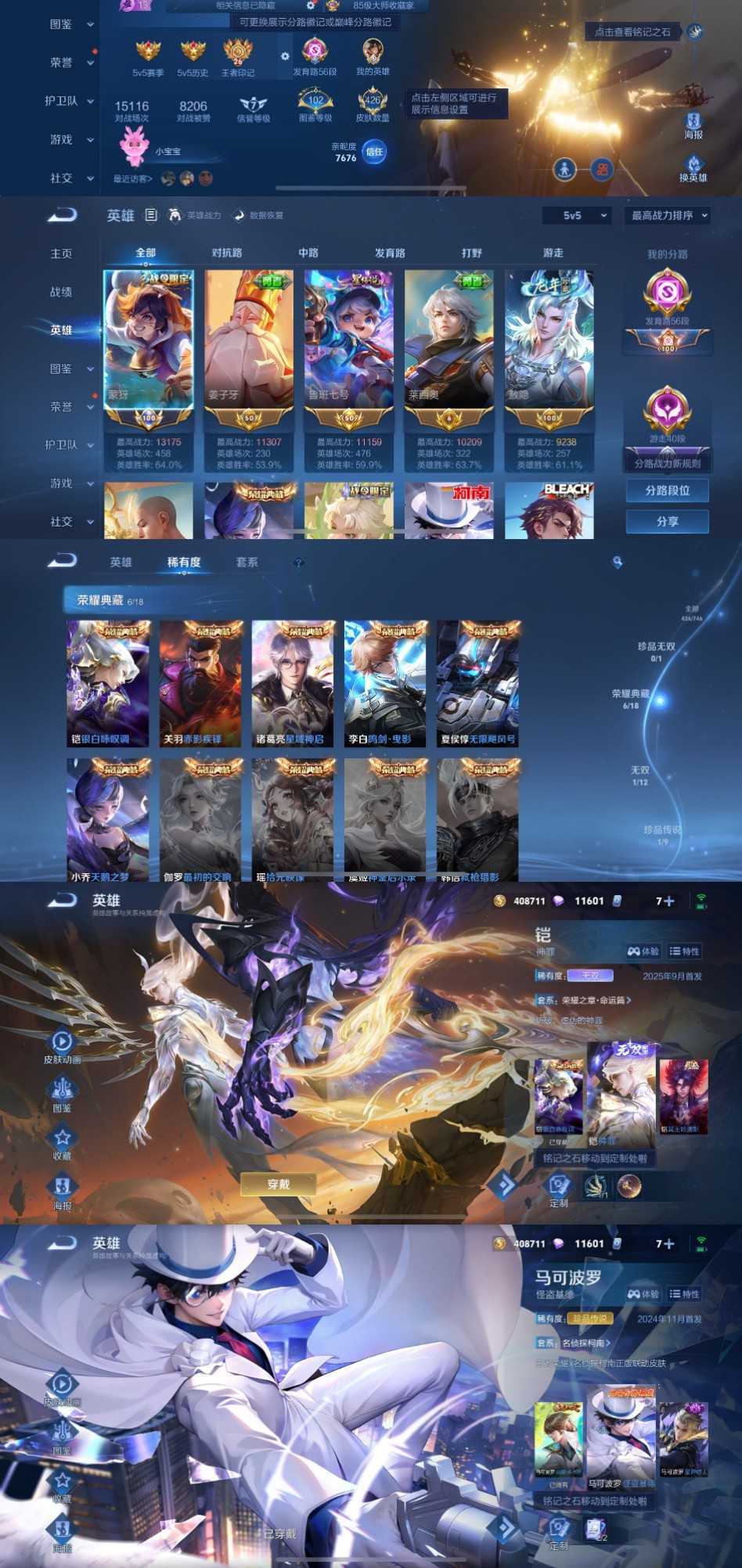 7典藏29传说✨国服蒙犽万战鲁班✨万战莱西奥万战姜子牙✨神罪怪盗基德✨落雪白狼银白咏叹调✨赤影疾风