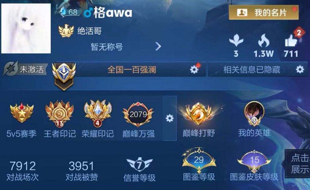 游戏区服:王者荣耀-QQ苹果-QQ账号 -手Q143区-响遏行云
