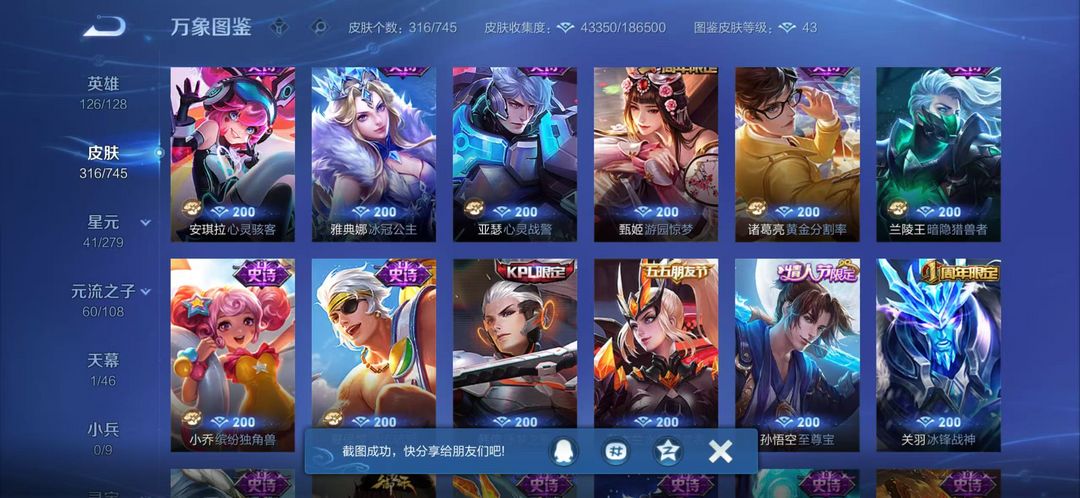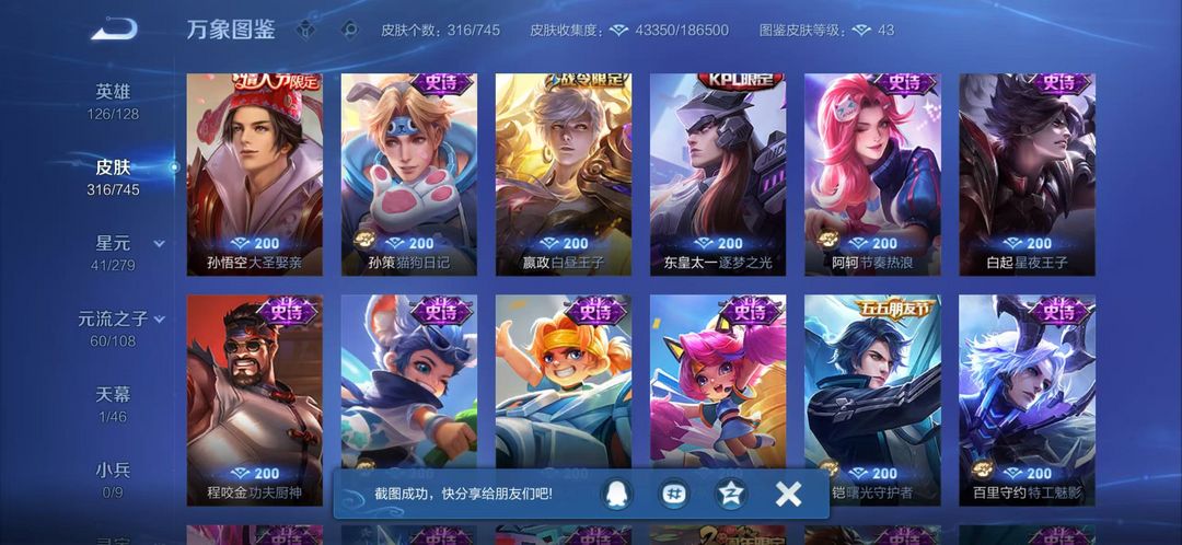 限制: 撤单率<20%才可租用此帐号装备描述:----------公司账户!!!!!!!!!!-如有恶意毁号发布政治敏感话题报警追究将其依法处理-----!!!!!!!!!!!!!!!!!! 贵族8 /316皮肤: 全息随影/至尊宝/冰封战神/逐梦之影/逐梦之光/死神来了/冰冠公主/猎兽之王/大圣娶亲/神迹守卫钟馗/狮舞东方/岱宗/飞衡/烈魂/神威/原初追逐者/梁祝/孙行者/黎明之约/山海玄木吟/星夜王子/节奏热浪/功夫厨神/龙骑士/电玩小子/心灵骇客/心灵战警/特工魅影/水晶猎龙者/箭羽风息/末日机甲男/圣诞狂欢/圣诞恋歌/鬼剑武藏/乘风破浪/千年之狐/白龙吟/街头霸王/逐浪之夏/紫霞仙子/舞动绿茵/幽灵船长/天才门将/偶像歌手/曙光守护者/暗隐猎兽者/黄金分割率/缤纷独角兽/暗夜贵公子/猫狗日记男/青蛇/修罗/魅语/晚萤/李小龙/地狱岩魂/天秀启明/乐园奇幻夜/永昼/刘备百相守梦/电玩爆裂旋风/白昼王子/乘龙聚宝船/星界特工/雪豹霜爪/黄忠百相守梦/ 【传说皮肤】:白虎志/仲夏夜之梦/超时空战士男/久胜战神/一念神魔/启明星使/时雨天司/无双飞将/怒海麟威/乘龙铭钟鼎/乘龙问璇玑/鸣野蒿/愿照山河定/幻光神枪/神树通天