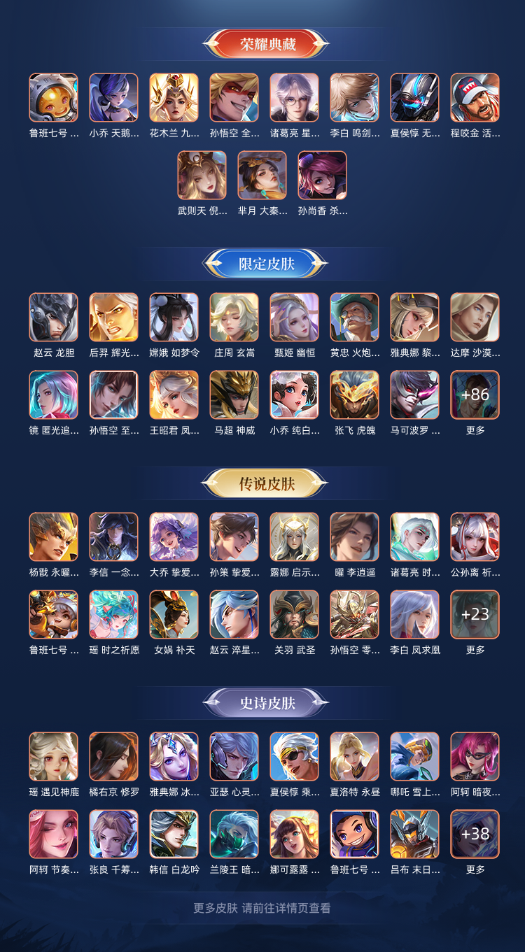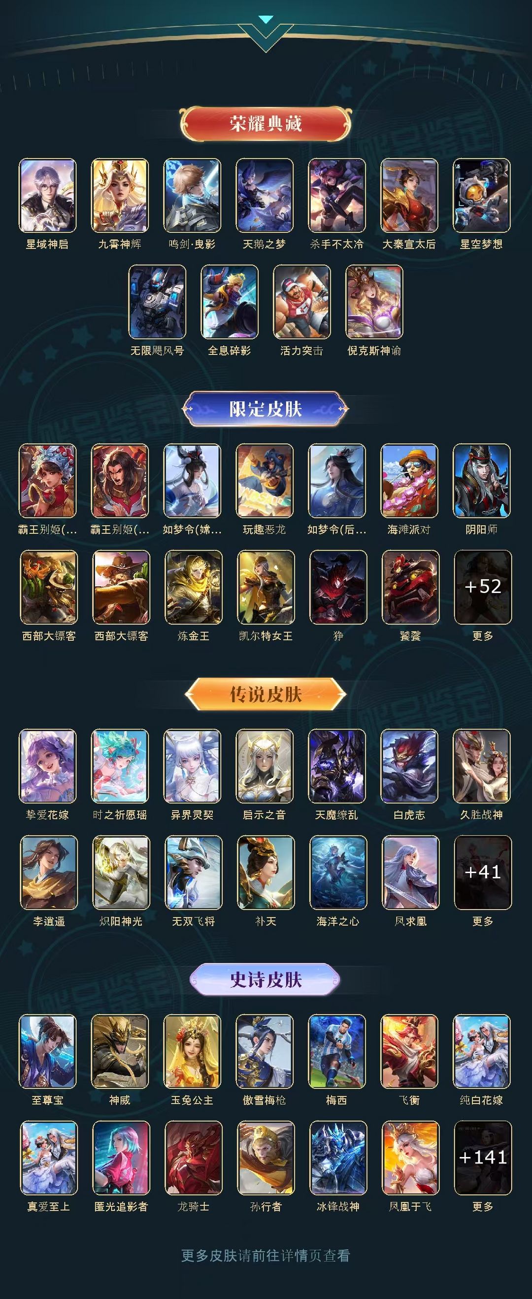 贵族等级V10 11典藏 435皮/满英雄/敖隐/ 冰锋战神/街头霸王/天鹅之梦/纯白花嫁/至尊宝