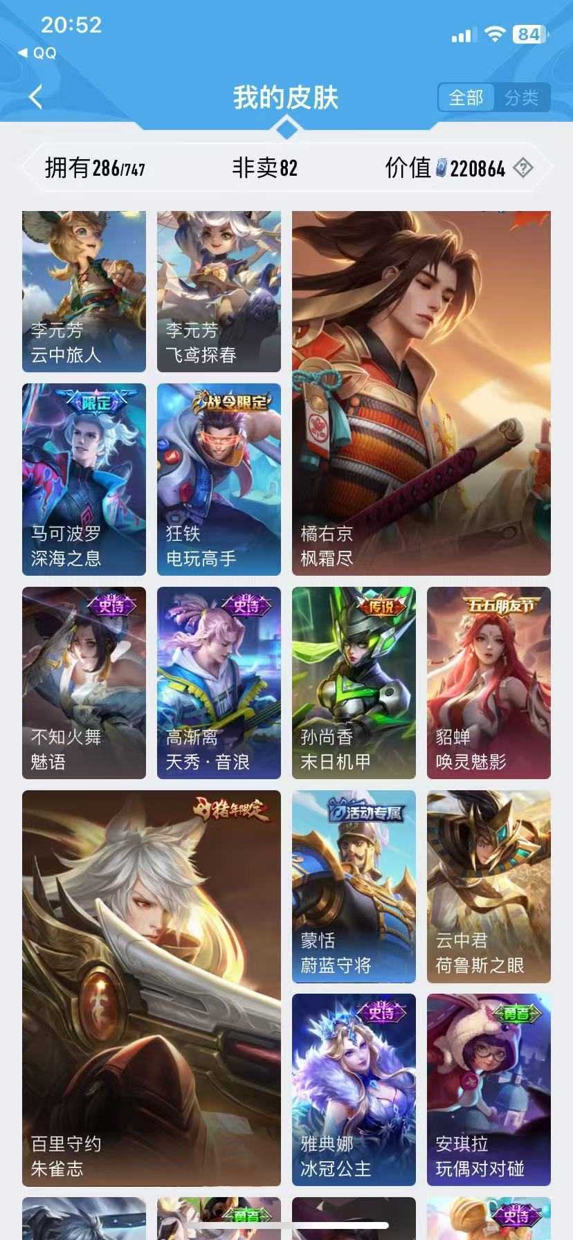 游戏区服:王者荣耀-QQ苹果-QQ账号 -手Q126区-高山流水