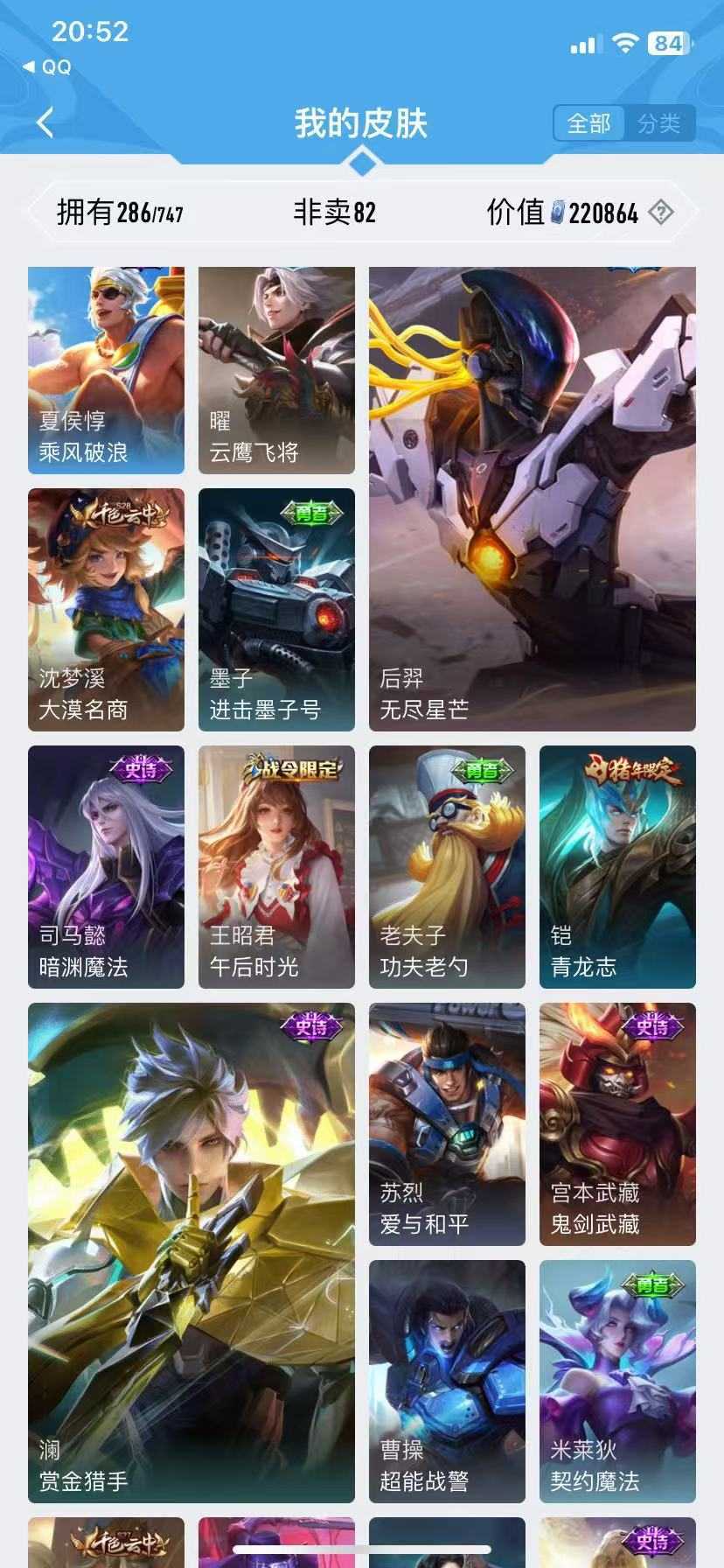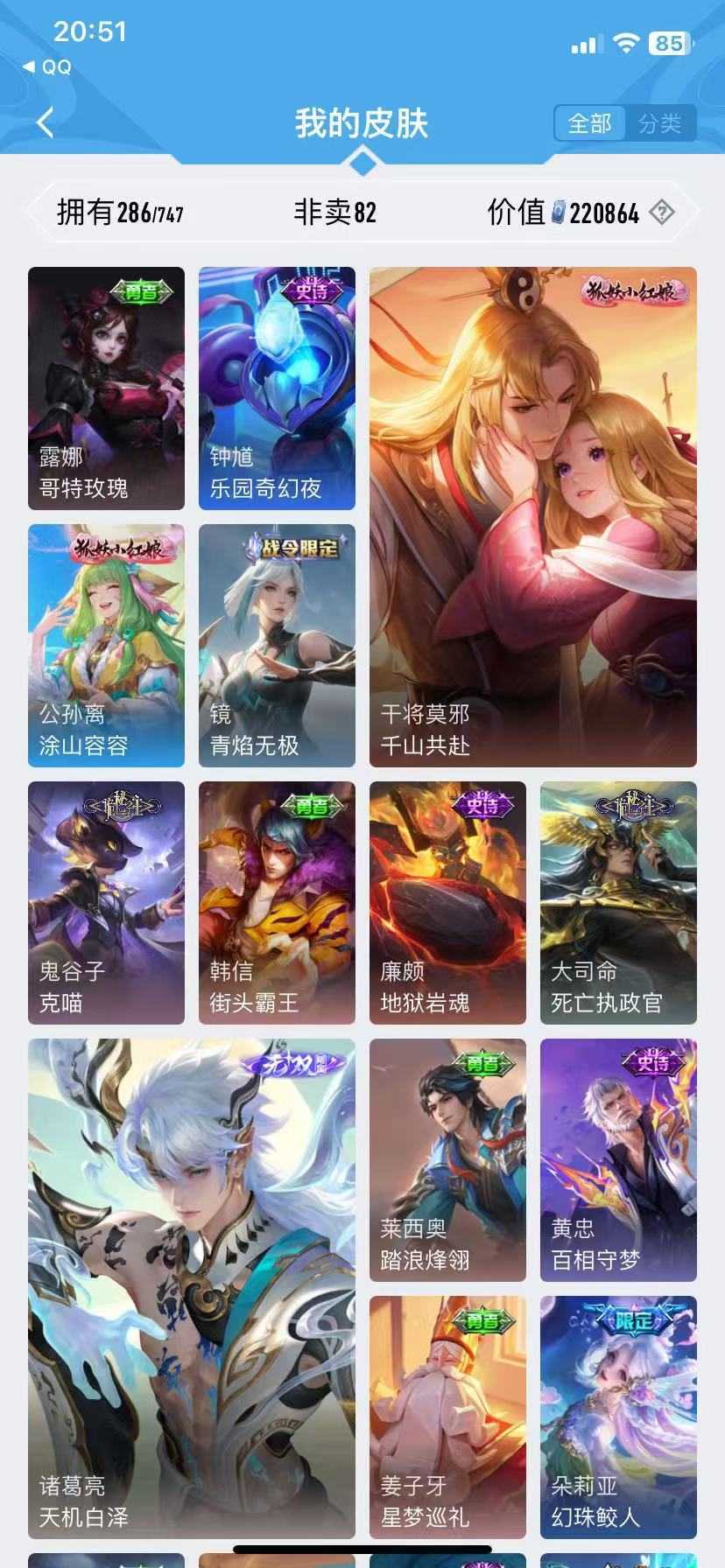 诸葛亮无双♥死亡执行官♥千山共赴♥深海之息♥枫霜尽♥苍雷引♥诗剑行♥无尽星芒♥无双飞将