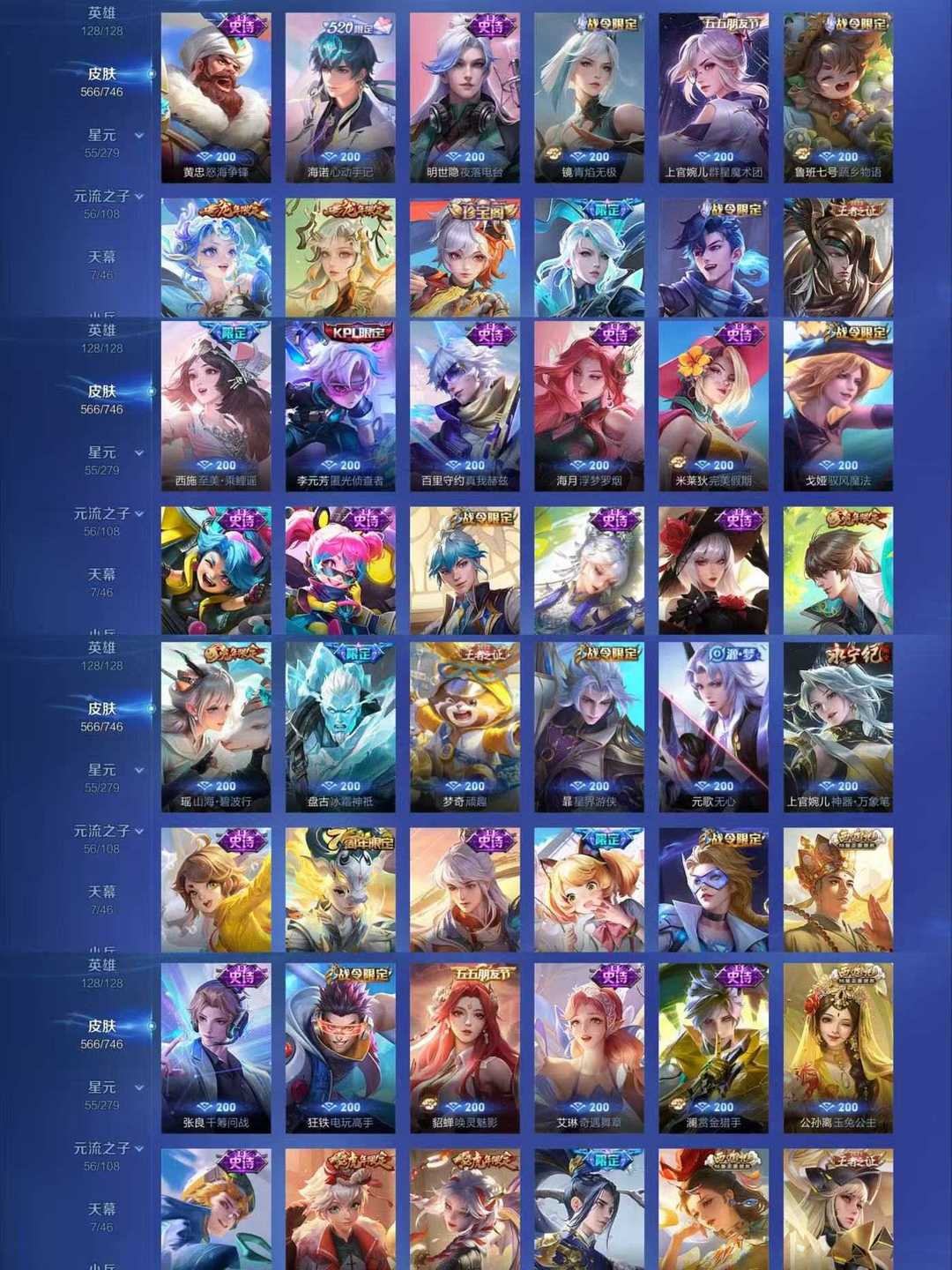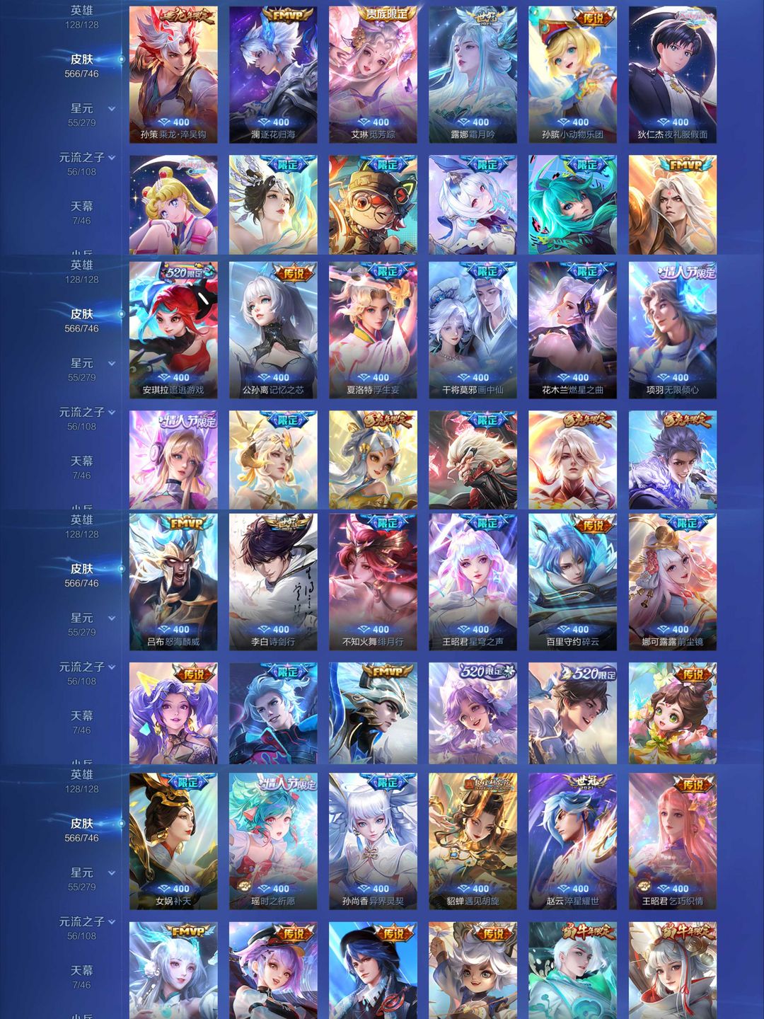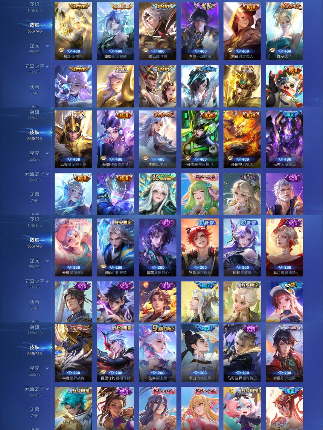 567p王者极品女号无双贵族,700多戳戳,hellokiity小兵,瑶全皮,10荣耀典藏10无双,