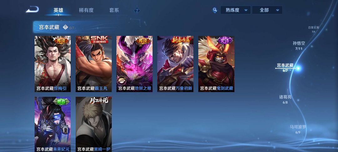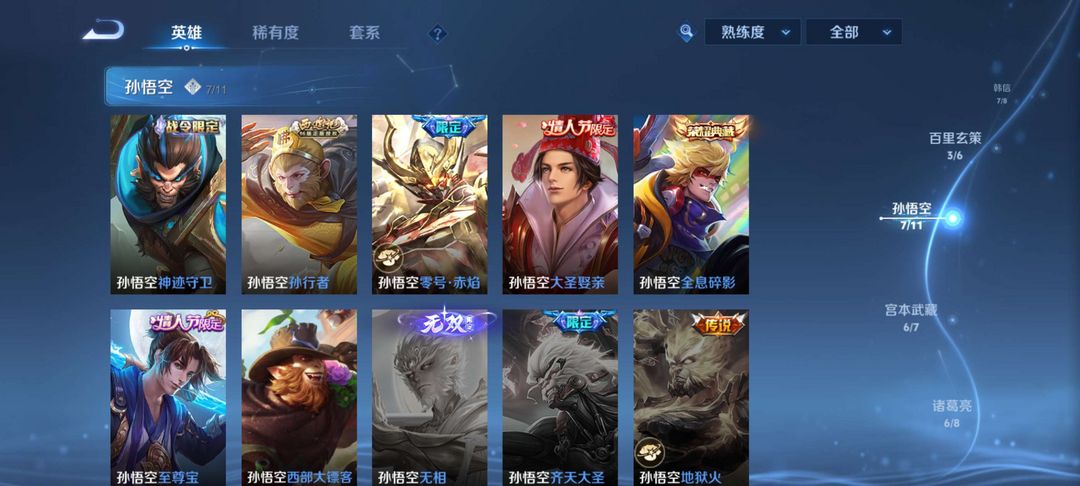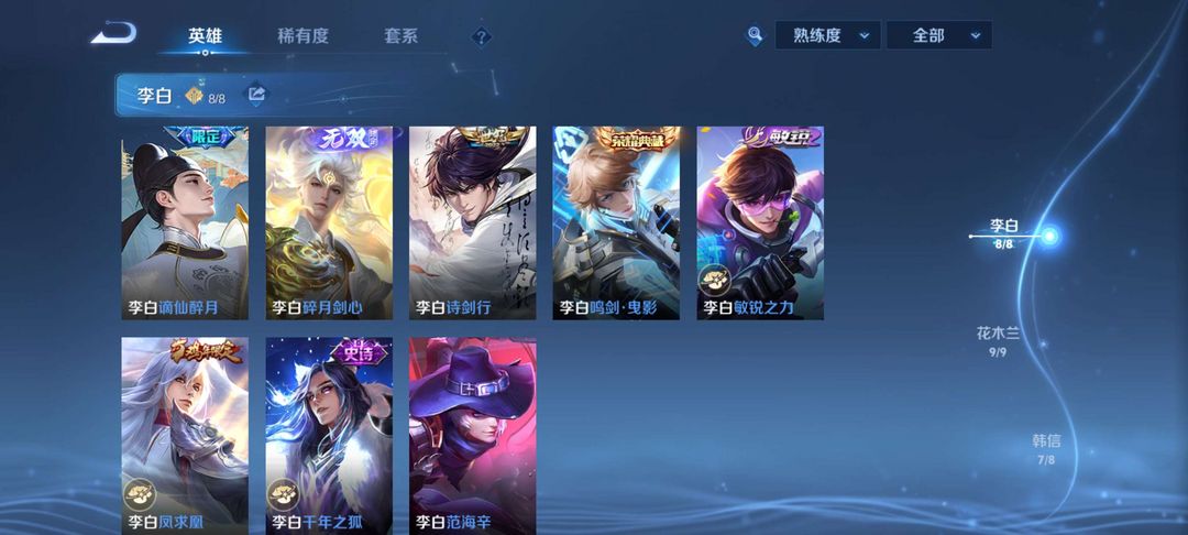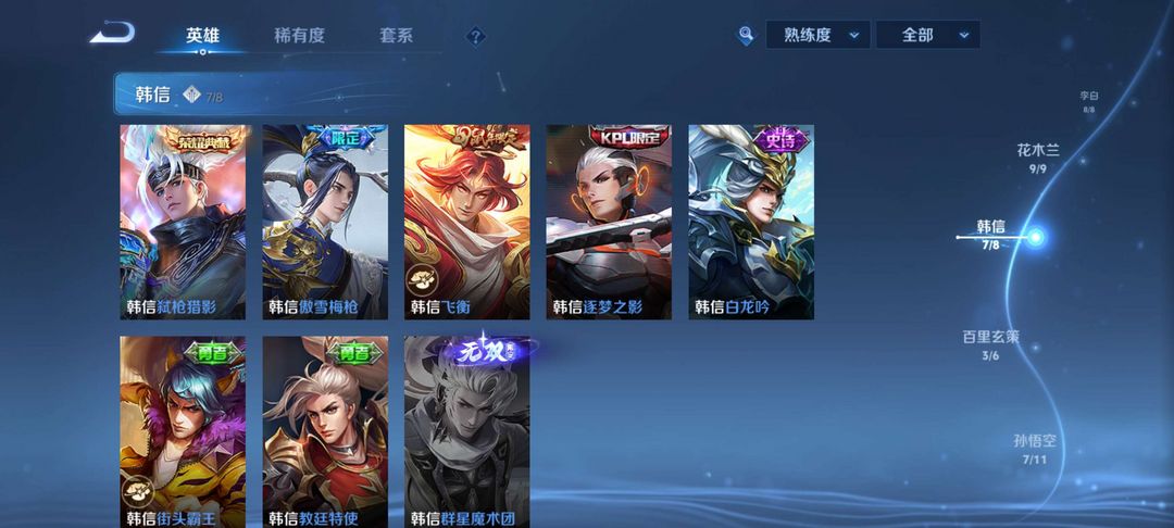 6个典藏,李白全皮,木兰全皮,韩信差一个无双