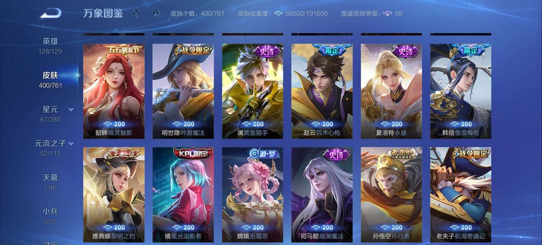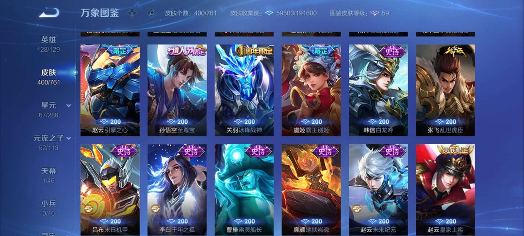 [贵族9]402皮2典藏31传说110史诗140限定177勇者,大家喜欢此账号可以收藏,多租多送