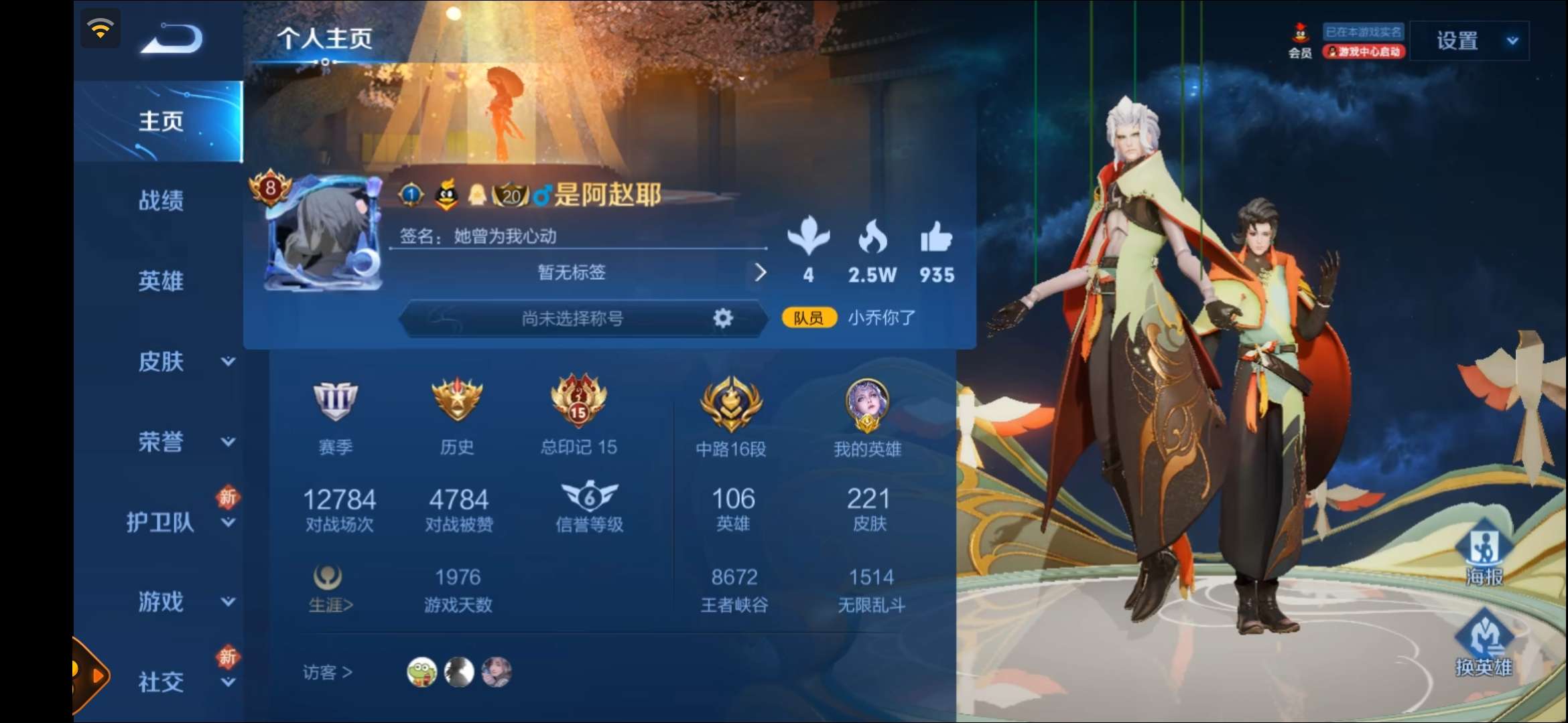 游戏区服:王者荣耀-QQ安卓-QQ账号 -手Q144区-侠客行