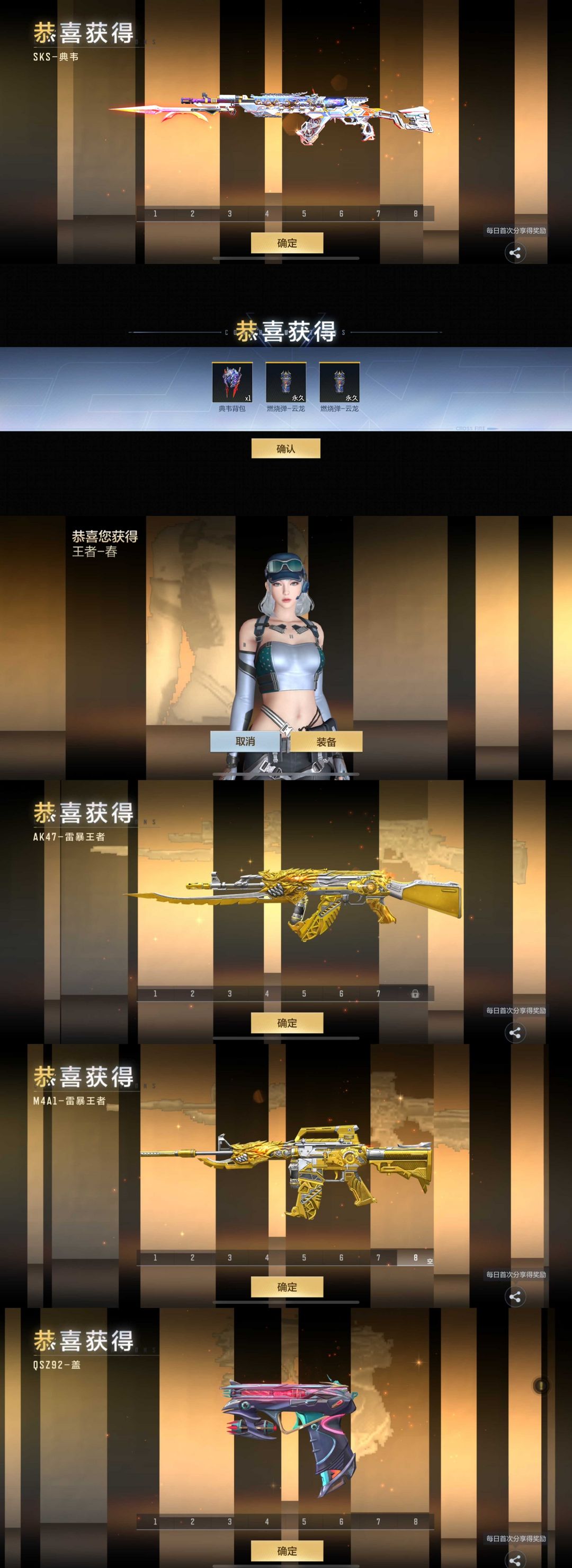 典韦♥️王者春!王者雷暴akm4✨幻灵凤雏!王者白虎星神✨7紫迹7紫电大套7紫锋7紫翼7王者cop✨