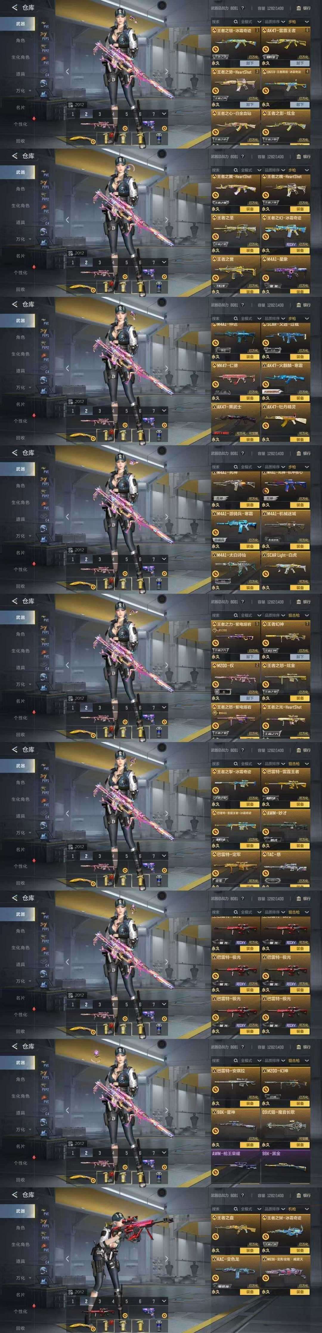 装备描述:v10紫电王力王幻王者蔷薇王者雷霆王者cop七王峰冰皮等后王者星神王者白虎已补