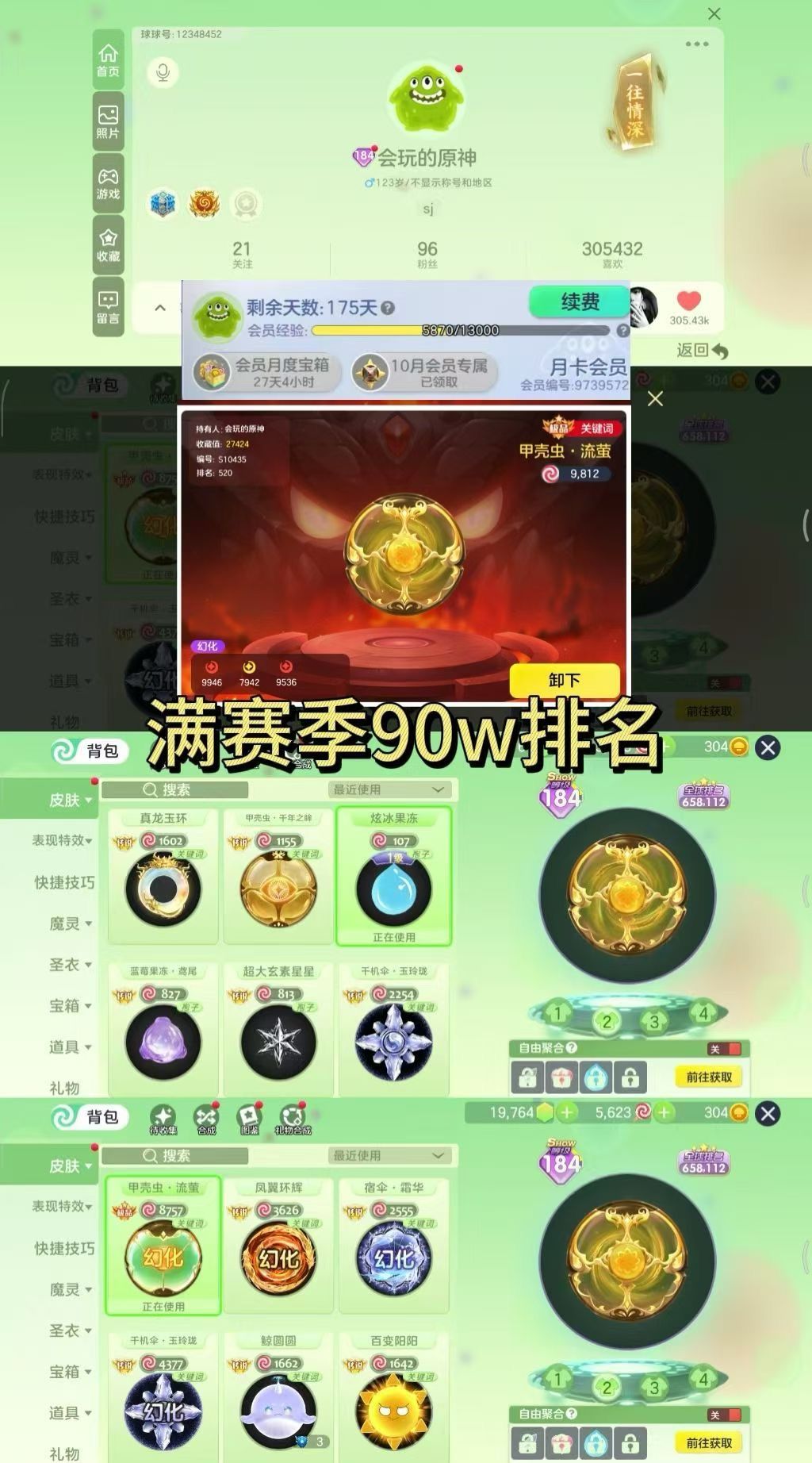 满赛季90万排名号顶指挥辅助号年卡【满级幻化金色漩涡十字架甲壳虫*水滴*幻化漩涡凤翼环辉*幻化千机伞