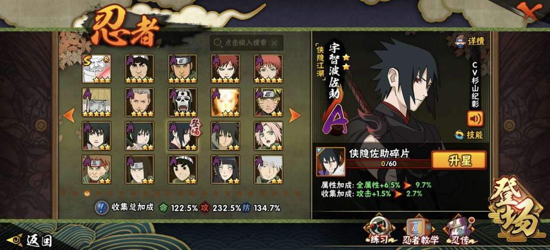 侠隐佐助加皮肤!飘带黑绝盾狗198忍者多多41s忍52a基本上老s以外全,通有熊猫万蛇螃蟹满级霸体。