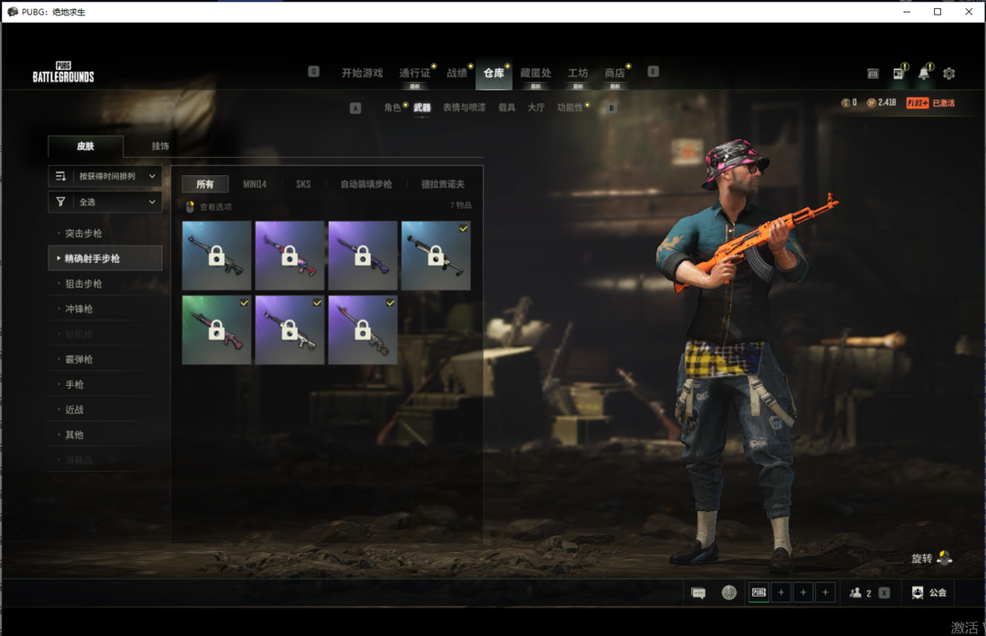 装备描述:可排位✨渔夫帽柏林觉醒长裤✨兰博基尼服饰套✨黄金齿轮M76PUBG信条马甲镀金AWM✨老兵队长套✨马尔霍特拉套