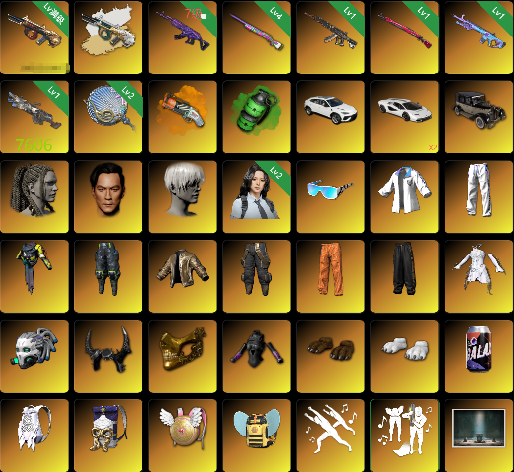 瀚娜新大厅兰博超跑✨10神器⑩级异色牛头AUG美杜莎7级✨4级m24✨彩烟烟枪金面发光臂尼尔头新舞蹈