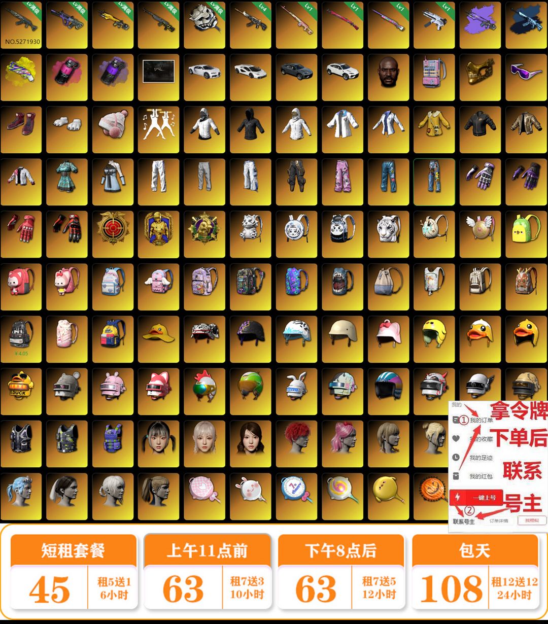 装备描述:找客服拿令牌码!!!!!!网吧电脑重启再玩以防外挂残留!请勿击杀队友,开挂,鼠标宏芯片,分解饰品,恶意毁号。违反者必定拉黑,平台封杀。互联网制时代,切勿以身试法。 24小时在线监控,违反规定直接扣所有租金并踢下线,被封必追究法律责任。温馨提示~不可利用此号行骗、卡BUG、恶意击杀队友、使用或浏览外挂等第三方软件~违反将会扣押金及租金~电脑有外挂第三方的请勿租用。杜卡迪-迈凯伦-兰博基尼-阿斯顿马丁-青龙M72-美杜莎-异色AUG-火麒麟-柏林-可排位时光加农SKS魔咒之力MK12塞壬平底锅刻耳柏洛斯M249美杜莎BERYLM762弥诺陶洛斯AUG午夜惊魂KAR98K无重力MP5K-无信号M416德拉贡诺夫爆裂AUG沙悟净MINI14猪八戒孙悟空M24圣诞AKM小兔巡逻队MK12危险玩偶屋SLR霓虹之梦 AUG武SKS青龙M762朱雀M416恶魔猎手ACE彩虹之上M24黑暗深渊M762危机MK12猛虎猎手KAR98K铃儿响叮当MiNI14不给糖就捣蛋锯齿收割者齿轮头M762妖魔之触 ACE32柏林黑东红东战神白运动裤J9哔站菠萝大魔王手套丑男丑女大金标网鱼白运动喷子S1897权志龙AUG