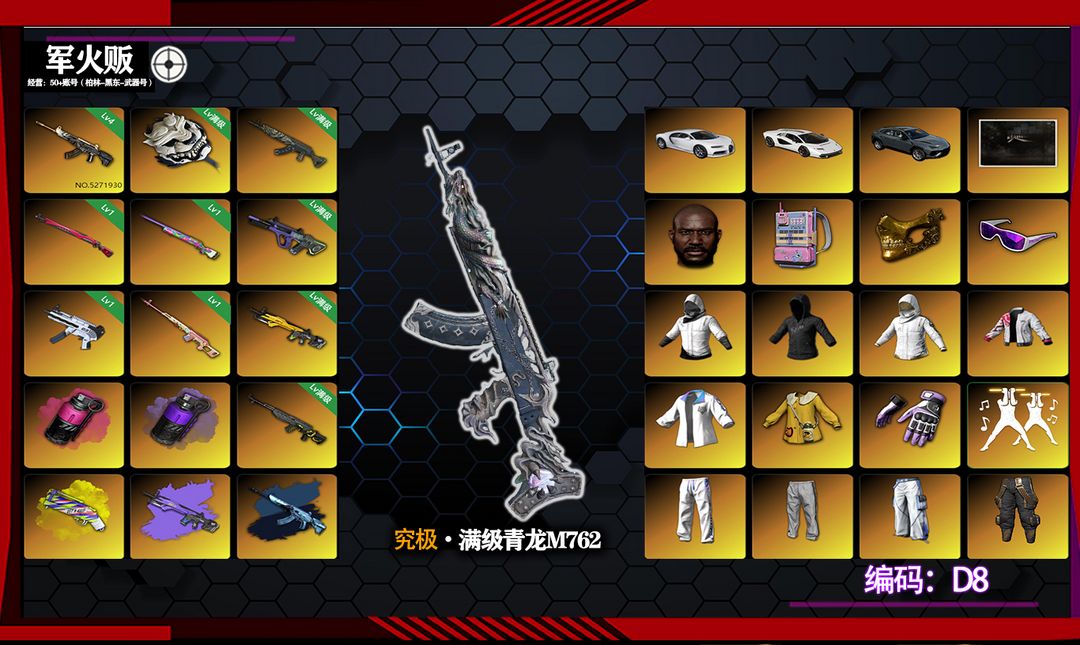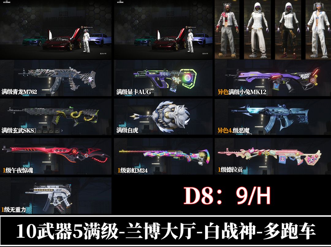 10神器5满⭐青龙M762⑩显卡AUG⑩异色小兔⑩异色恶魔⑩柏林布加迪兰博基尼黑鬼烟雾枪弹金标可排位