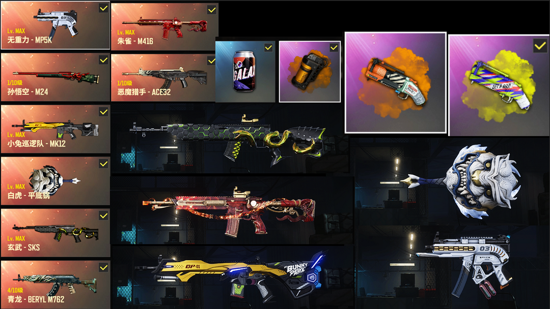 装备描述:---家里不要租 家里电脑玩不了--- 【5满级9神器】满马丁/迈凯伦/兰博SUV/满级朱雀M416/满级小兔MK12/满级无重力MP5/满级玄武SKS/满级白虎/④青龙M762/美杜莎M762/恶魔ACE/孙悟空M24/2烟枪/烟雾弹/熊脚