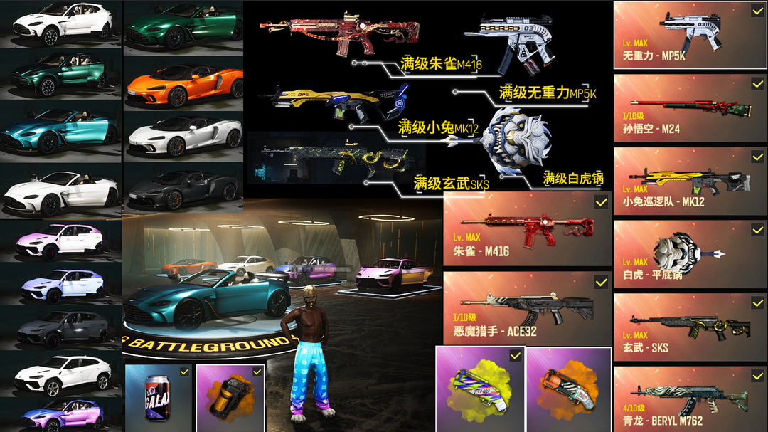 【5满级9神器】满马丁/迈凯伦/兰博SUV/满级朱雀M416/满级小兔MK12/满级无重力MP5/满