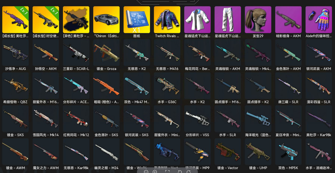 异色美杜莎M762√布加迪豪华跑车√时空使者M416√双马尾√暗隐缠身AKM√AUG√