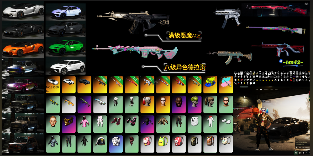 【8神器】绿头✨小丑女✨兰博基尼✨迈凯伦✨满级恶魔ACE✨八级异色德拉贡✨权志龙AUG✨无信号M41