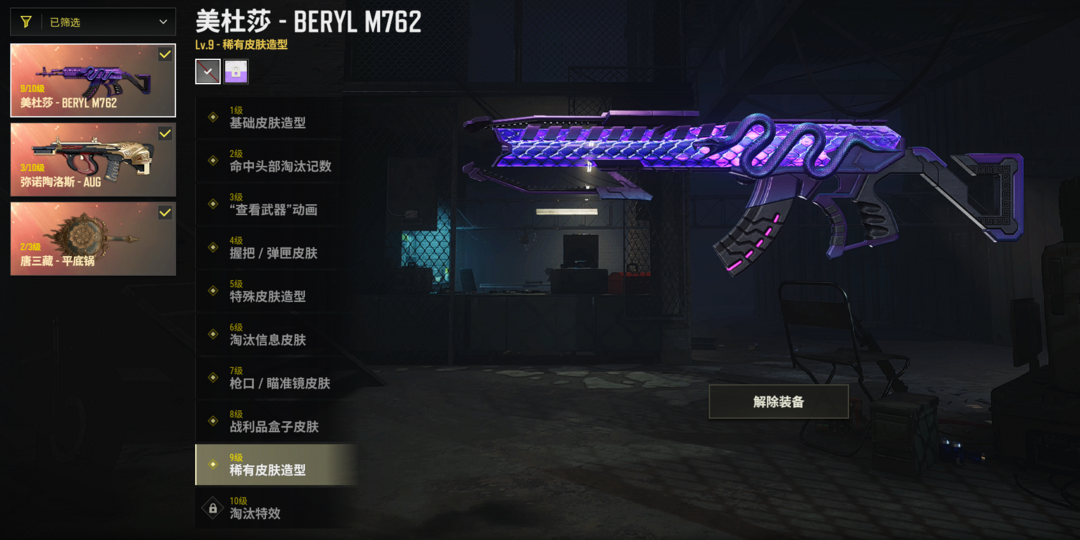 ⑨级美杜莎M762✅③级牛头AUG✅②级唐僧锅✅绷带AK✅粉柏林战神绿东黑鬼拉风龙