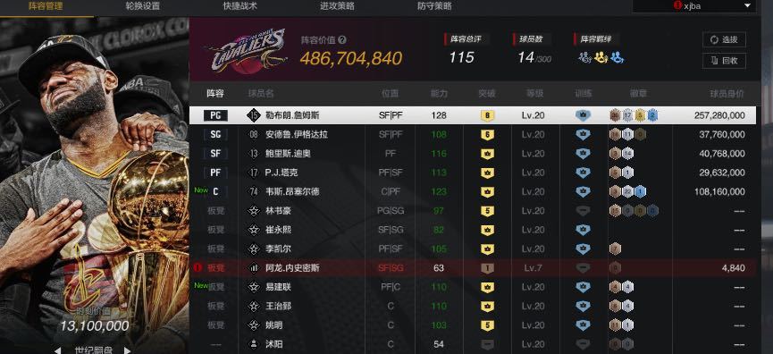 角色名:5亿翻盘6詹姆斯 10昂塞尔德